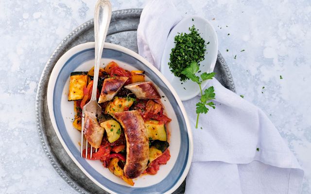 Buntes Ofengemuse Mit Bratwurst Rezept Lecker