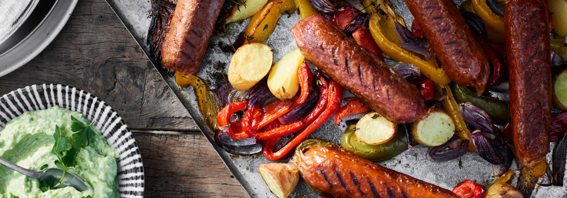 Bratwurst Mit Paprika Und Zwiebeln Vom Blech Rezept Kitchen Stories