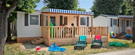Mobilheim auf dem 5 Sterne Campingplatz Julianahoeve. Das 3-Zimmer-Mobilheim Mars 24 qm ist für 4 Erwachsene und 1 Kind bis 6 Jahre geeignet. Das Mobilheim verfügt über 2 Schlafzimmer.