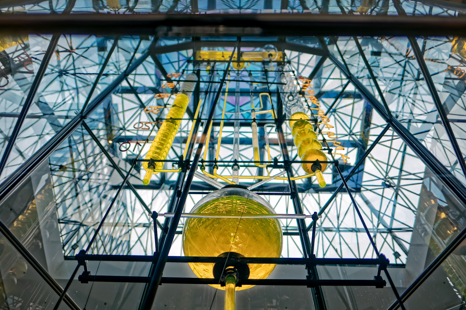 Eines der bekanntesten Kreationen sind wohl die weichen Uhren. Die Glasbehälter werden mit dem eingefärbem Wasser gefüllt und entleeren sich. Es ist eine 13 Meter hohe Wasseruhr der besonderen Art die über die 3 Stockwerke des Europa-Centers geht.