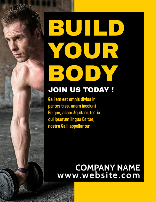 Build Your Body Black Yellow Fitness Trainer Template Easil