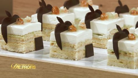Alle videos von das große backen. Das Rezept der Profibäcker von Team Schwarz aus Das große Backen - Die Profis gibt es hier. Zum Schluss werden die Schnitten mit Schokoladen-Elementen ausdekoriert.